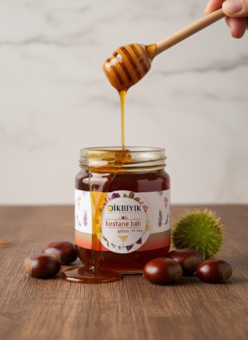 Kestane balı, arıların kestane ağaçlarının çiçeklerinden topladığı nektardan üretilen, koyu renkli ve aroması yoğun bir bal türüdür. Dikbıyık Arı Ürünleri olarak, saf ve katkısız kestane balımızla hem lezzeti hem de sağlığı sofralarınıza taşıyoruz. Kestane Balının Faydaları Bağışıklık Sistemi Dostu Kestane balı, doğal antibakteriyel özellikleri sayesinde bağışıklığı güçlendirir ve vücudu hastalıklara karşı korur. Sindirim Sistemine Destek Özellikle mide problemleri ve hazımsızlık yaşayanlar için faydalıdır; sindirim sistemini düzenlemeye yardımcı olur. Enerji Verir Doğal şekerler sayesinde vücuda hızlı enerji sağlar, sporcular ve yoğun çalışanlar için idealdir. Lezzetli ve Aromatik Kendine has aroması ve yoğun tadı ile kahvaltılardan tatlı tariflerine kadar her öğünde kullanılabilir.