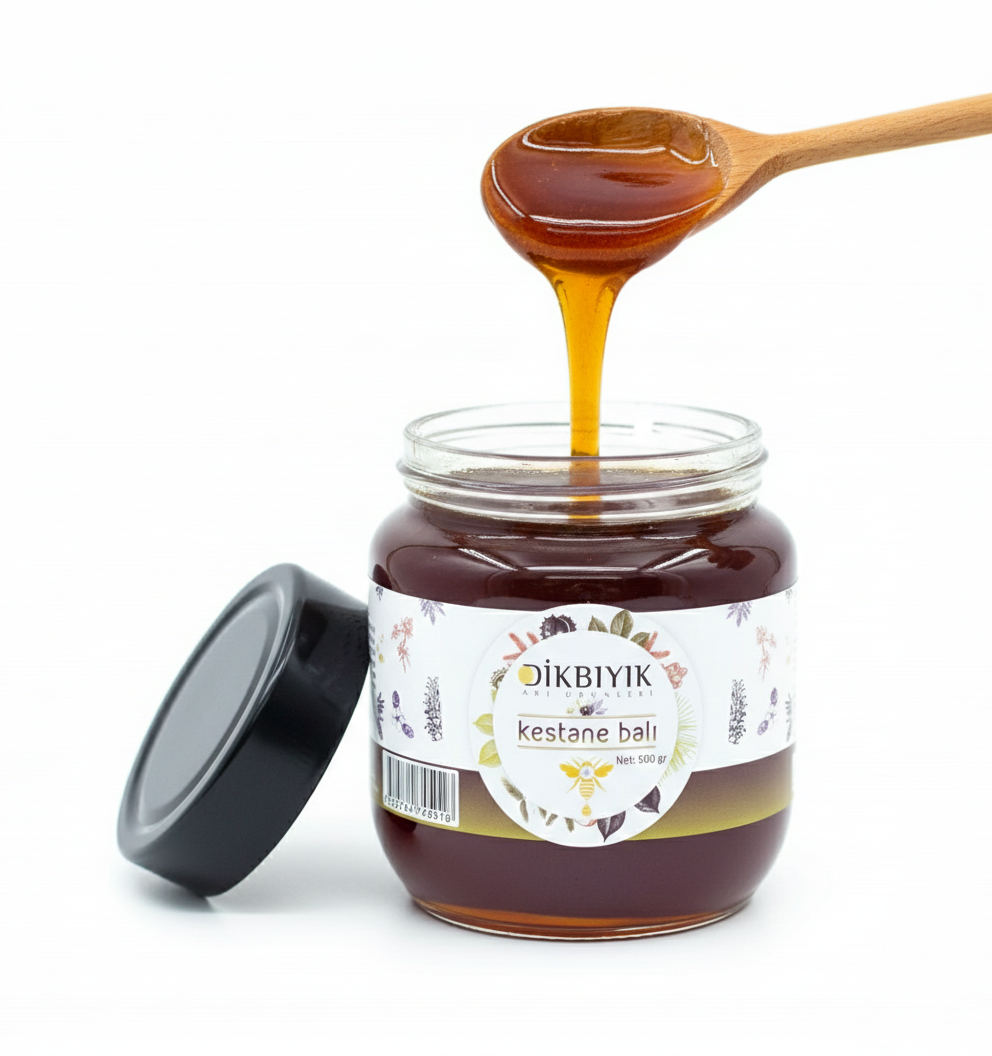 Kestane balı, arıların kestane ağaçlarının çiçeklerinden topladığı nektardan üretilen, koyu renkli ve aroması yoğun bir bal türüdür. Dikbıyık Arı Ürünleri olarak, saf ve katkısız kestane balımızla hem lezzeti hem de sağlığı sofralarınıza taşıyoruz. Kestane Balının Faydaları Bağışıklık Sistemi Dostu Kestane balı, doğal antibakteriyel özellikleri sayesinde bağışıklığı güçlendirir ve vücudu hastalıklara karşı korur. Sindirim Sistemine Destek Özellikle mide problemleri ve hazımsızlık yaşayanlar için faydalıdır; sindirim sistemini düzenlemeye yardımcı olur. Enerji Verir Doğal şekerler sayesinde vücuda hızlı enerji sağlar, sporcular ve yoğun çalışanlar için idealdir. Lezzetli ve Aromatik Kendine has aroması ve yoğun tadı ile kahvaltılardan tatlı tariflerine kadar her öğünde kullanılabilir.
