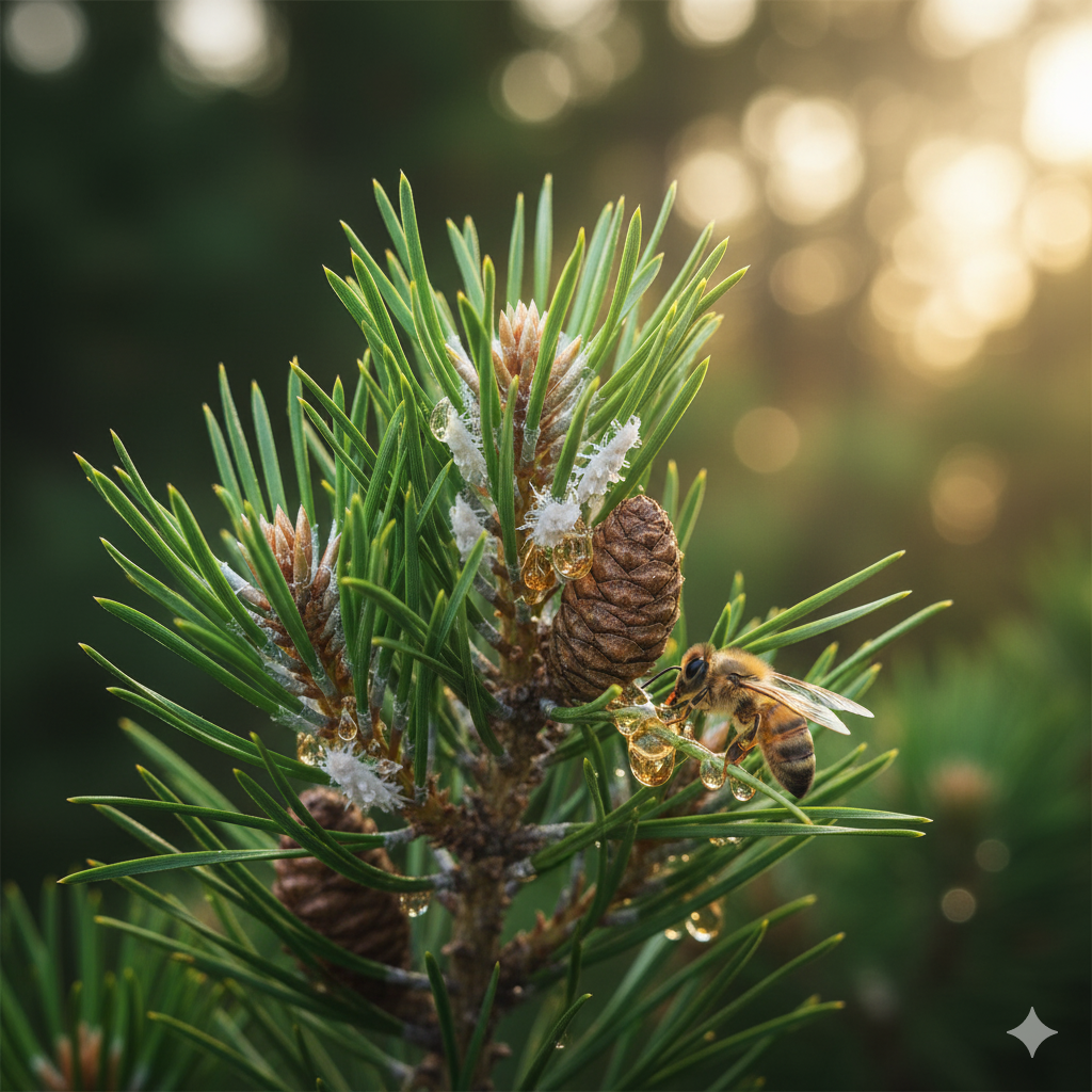 Çam ormanlarında basra böceği çam ağacı suyunu emerek salgı bırakırlar arılarımız Eylül ayında çam ağaçlarındaki bu salgıları toplayıp kovanlarına taşırlar kendilerinden enzim katarak çam balı yaparlar, çam balı çiçek ballarına göre koyu renklidir, kokusu çam ağacı kokusunu içerir, kendine has kokusu vardır, fiziksel ve kimyasal özellikleri farlıdır, leziz aroması vardır